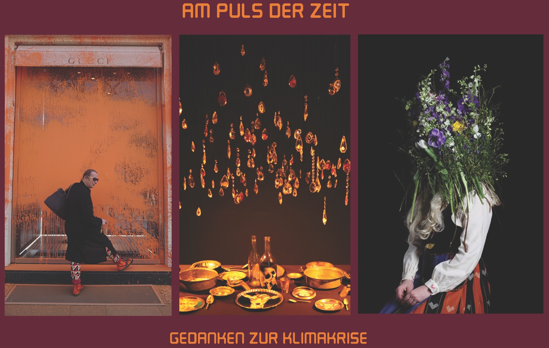 In der Ausstellung „Am Puls der Zeit – Gedanken zur Klimakrise“ stellen Künstler*innen Werke aus, die sich mit der Umwelt, dem sich verändernden Klima, Naturkatastrophen, dem Aussterben der Arten und der Verschmutzung der Ozeane sowie Flüsse auseinandersetzen … Suchen sie nach Lösungen oder fühlen sie sich hilflos? Gibt es einen poetischen Ansatz oder ist dieser reale Aspekt zu überwältigend? Hat die Kunst eine Verantwortung, den Klimawandel anzusprechen? Setzt sich der Underground mit dieser Thematik künstlerisch auseinander?