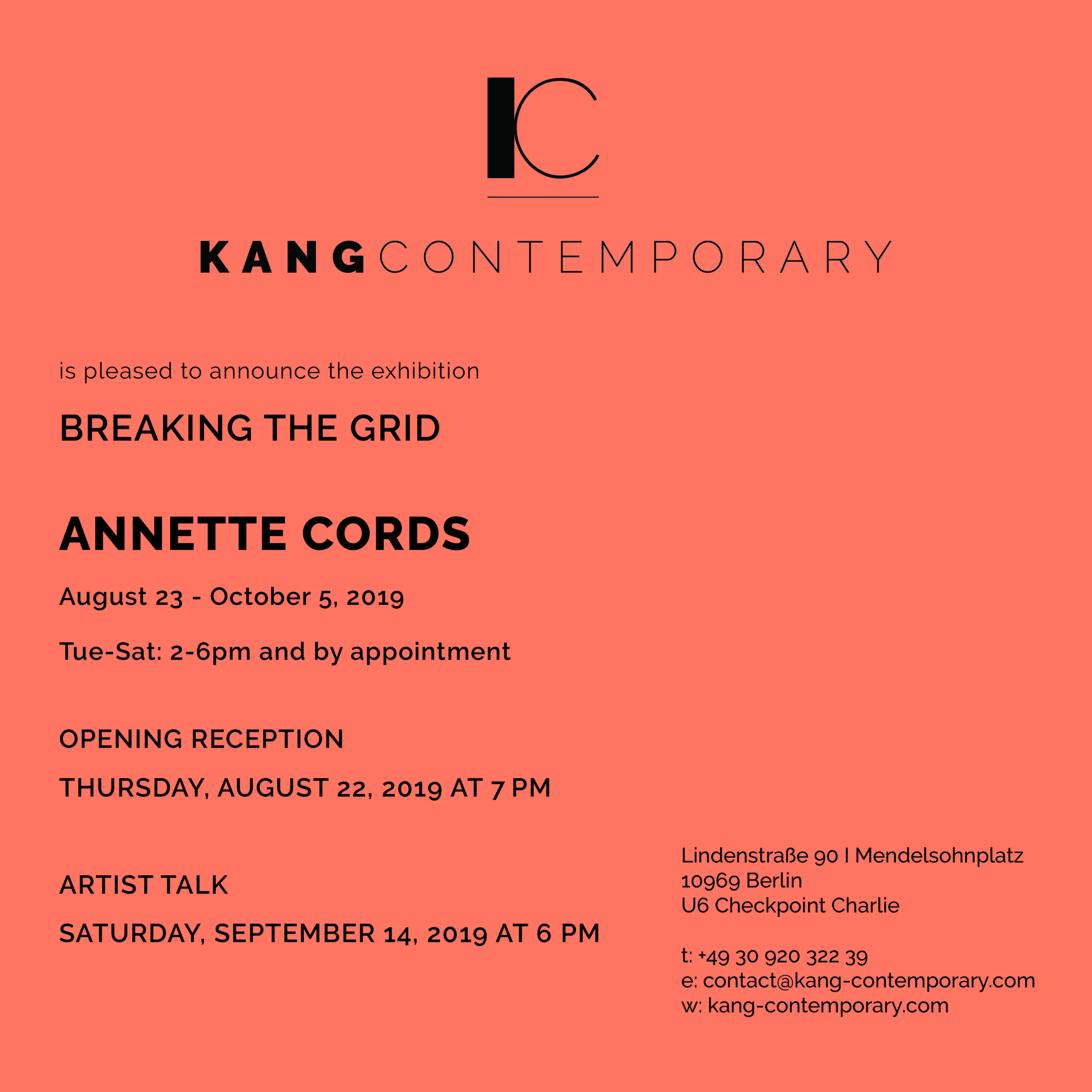 Die ausgestellten Arbeiten artikulieren Weben als eine facettenreiche, nuanciert, und oft unterschätzte Sprache, die Entwicklungen in Schrift, Malerei und Abstraktion aufgreift und ergänzt. Die Sprache des Webens ist einfach und binär: Die Kette ist entweder oben oder unten. Annette Cords nutzt diese Kommunikationsform um komplexe politische und kulturelle Schnittstellen zu verdeutlichen. Sie hinterfragt die Hierarchien von Kunst und Handwerk, arbeitet historische Webmuster auf, und verbindet das visuelle Vokabular der Urban Art mit dekorativen Webstrukturen. Ihre Arbeiten verdeutlichen die Vielschichtigkeit des Webens und laden den Betrachter ein genau hinzuschauen und neue Bedeutungen zu konstruieren.