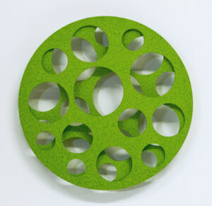 Reinhard Wöllmers Objekte aus durchgefärbtem Papierpulp wie auch seine Papierschnitte zeichnen sich durch geometrische Exaktheit und intensive Farbigkeit aus, bergen aber immer auch ein optisch verwirrendes, spielerisches Moment.