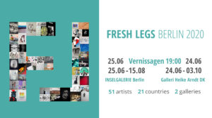Unter dem Titel FRESH LEGS schreibt die Galleri Heike Arndt DK jährlich einen weltweiten Aufruf für Malerei, Zeichnung, Foto, Video und verwandte Bereiche aus. Zum zweiten Mal ist die INSELGALERIE Berlin Partnerin dieses Projekts. An beiden Standorten kommentieren 51 Künstler*innen unsere Zeit.