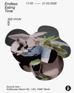 ENDLESS EATING TIME is Seehyun Kim’s solo exhibition at SomoS Arts, featuring an immersive installation accompanied by video works. Kim constructs environments that do not settle into a single, stable viewpoint.