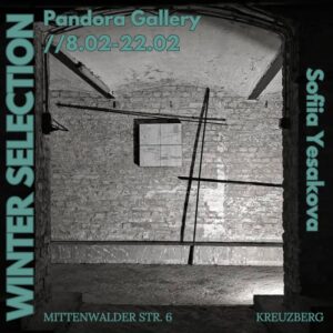 Join us for the Winter Selection by Pandora closing party at Untergeschoss der Pandora, Berlin, on 22 Feb, 18:00-midnight. Celebrate with local techno, drinks, and final views of Sofiia Yesakova, Maurice Fey, PEREDROM, and Hans Zeeldieb's works. Entry by donation. Don't miss it!