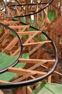 Spielen, lachen, laut sein, toben, nichts tun – und das in einem Ausstellungshaus! Mit BAUBAU hat die Künstlerin Kerstin Brätsch einen kostenlosen Spielort für Kinder gestaltet, in dem mehr erlaubt ist als verboten. Bunte Wandtapeten, Strukturen, Objekte und eine Reihe von „Loose Parts“ (losen Mater