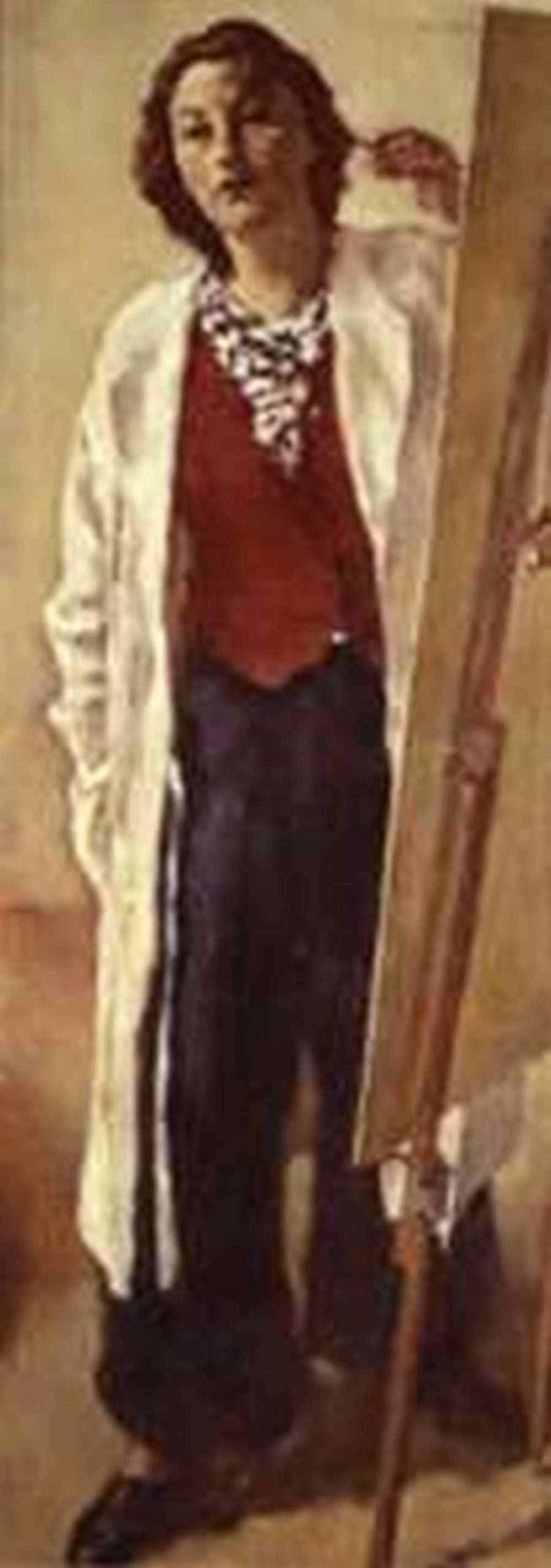 Lotte Laserstein, Selbstbildnis an der Staffelei, 1938, Öl auf Sperrholz, 127,6 × 47 cm