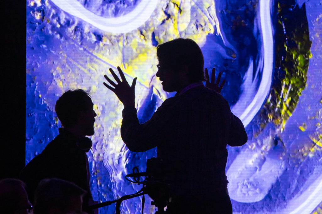 Christoph Tannert (Künstlerischer Leiter Künstlerhaus Bethanien) im Gespräch mit den ausstellenden Künstlern