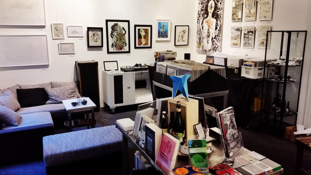 Ein Laden, spezialisiert für abenteuerliche elektronische Musik, unterirdische Kunst und subversive Bücher. Dazu eine Sammlung von limitierten Auflagen, Einzelstücken, und schwer zu findenden Produkten; Kulturelle Artefakte, oder auch belgische Biere, russischer Tee und Kaffee und Kakao aus radikalen Produktionsgenossenschaften in Lateinamerika.