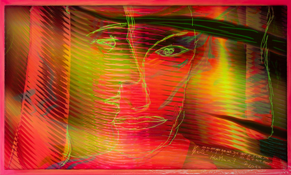 Transluzente selbst leuchtende philosophische Kunstwerke. Verschiedene Farbeinstellungen der LEDs lassen unterschiedliche Bilder sichtbar werden. Einmalig in der Kunst.