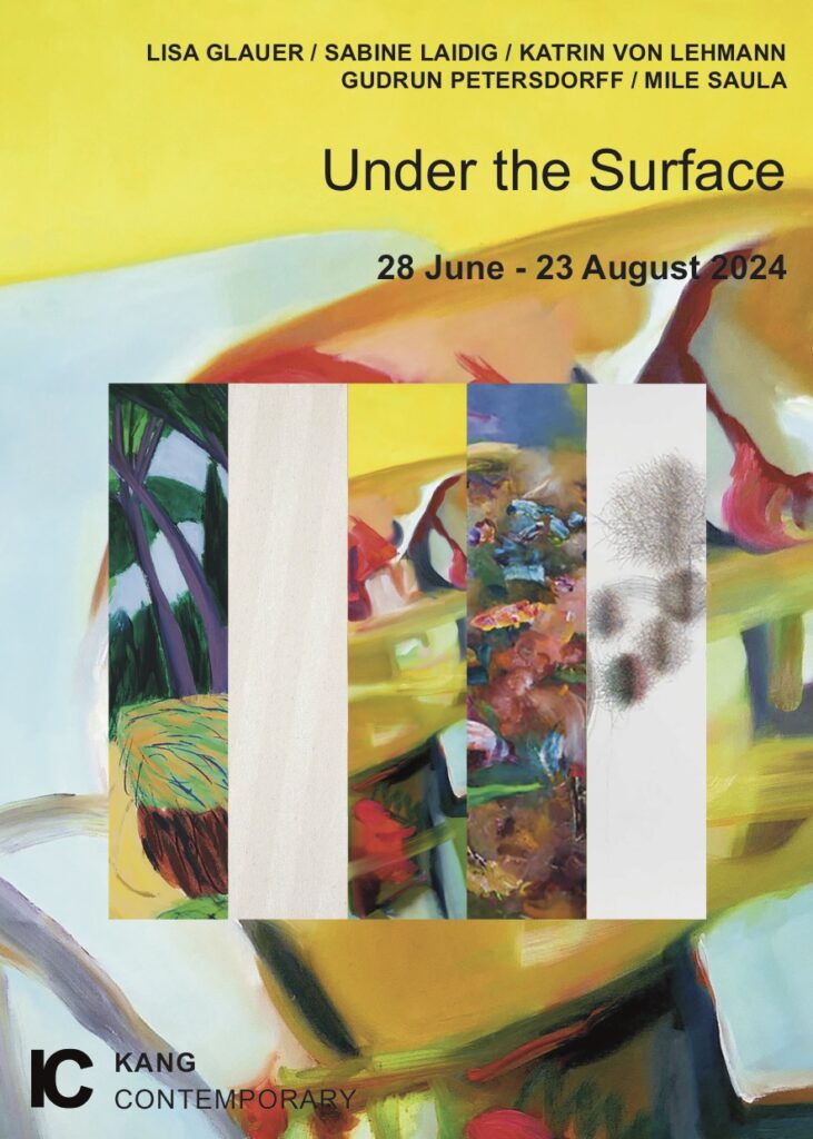 We would like to cordially invite you to the opening of the exhibition „Under the Surface“ with works by the artists Lisa Glauer, Sabine Laidig, Katrin von Lehmann, Gudrun Petersdorff and Mile Saula on 28 June at 6 pm.