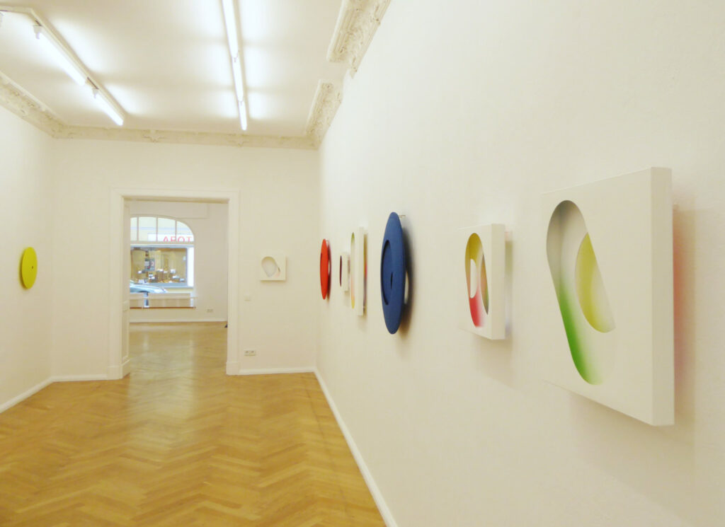 Reinhard Wöllmers Objekte aus durchgefärbten Papierpulp zeichnen sich durch geometrische Exaktheit und reine Farben aus. Dem gegenüber stehen seine Papierschnitte. Sie irritieren, spielen mit Farbe und Raum, lassen sich nicht auf den ersten Blick erfassen.