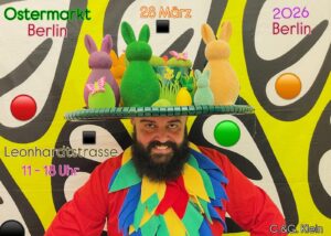 Beschreibung:Am 28. März 2026 wird die Leonhardtstraße zur großen Berliner Kunstmeile: Kunsthandwerkenden zeigen beim Ostermarkt von Family & Friends e. V. ihre Arbeiten – darunter sorbische Eiermalerei, ukrainisches Osterkunsthandwerk, Specksteinobjekte von AFRIKIKO und „Der Hut zum Fest“ von C&G HatArt.